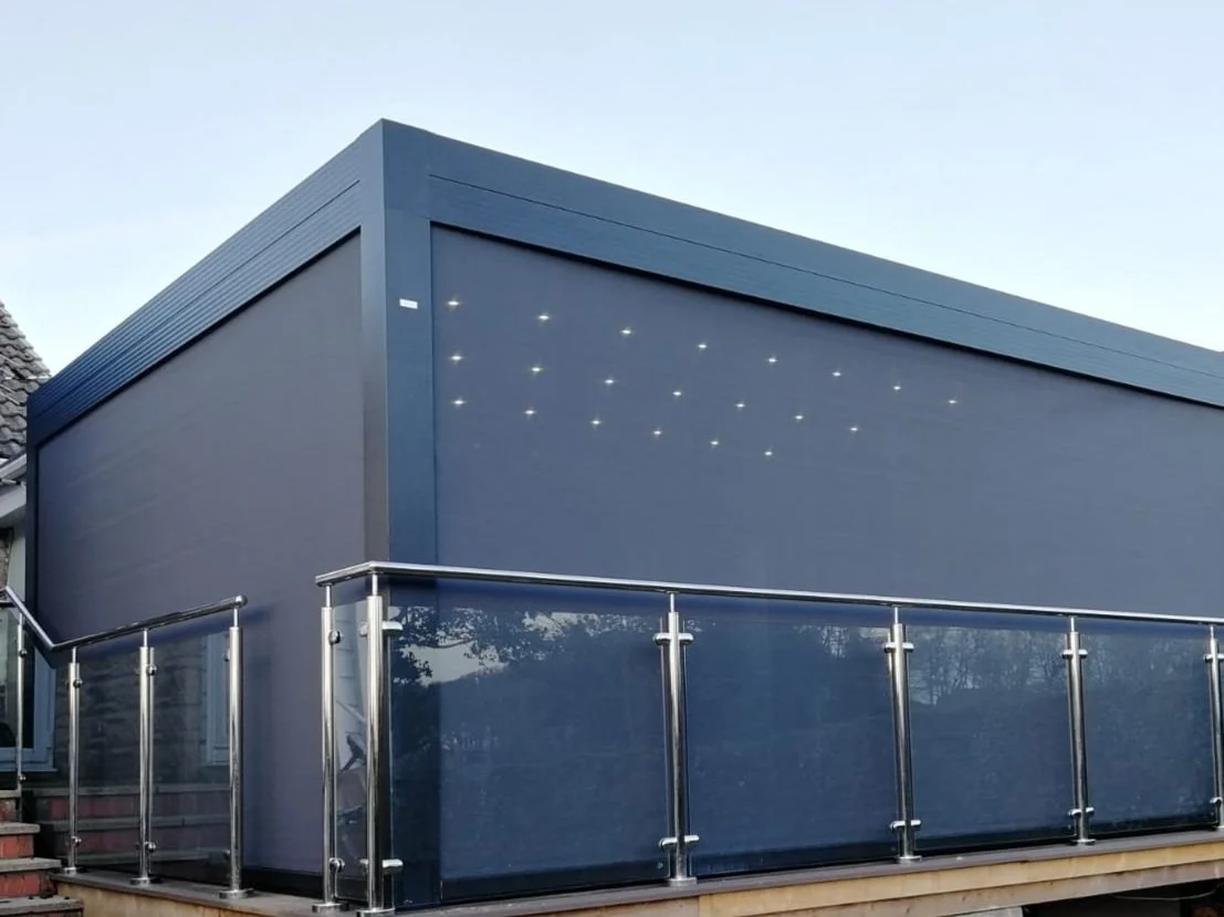 Retractable Screens are a perfect quick solution to prevent the wind and rain entering your canopy, a simple push of the button and the fabric retacts back into the cassette.
