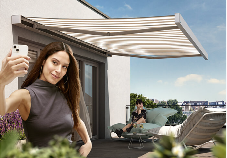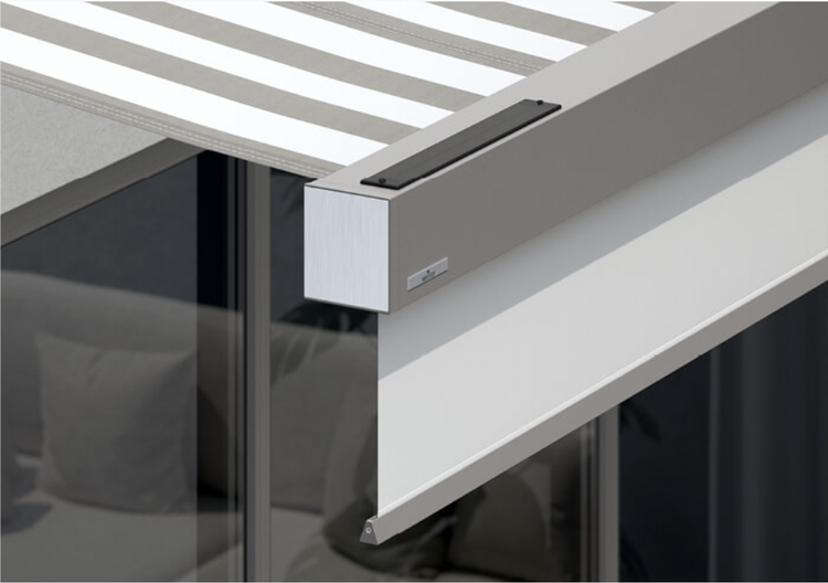 The all-round enclosed and robust awning cassette keeps the fabric and other technical components just as well protected against the elements as the controlled rain drain at the front of the front profile. -