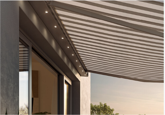 Our School Awnings are available with LED lighting – the optionally LED light bar or recess lights within the cassette provides a pleasant warm white light in the evenings.